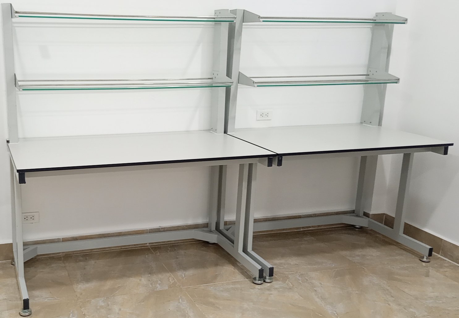 – Kệ hóa chất kích thước dài x sâu x cao: 3000x200x800mm, mặt kệ chất liệu kính cường lực giúp dễ dàng vệ sinh lau chùi hóa chất