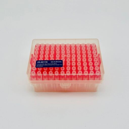 Đầu tip có lọc 10ul, dài 45,8mm, giảm bám dính ( Low retention) tiệt trùng, hộp 96 cái, không RNase & Dnase, endotoxin, Low retention, thùng 50 hộp Biologix; code 23-0011S